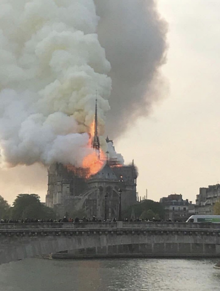 Наша землячка, Перший секретар з питань культури посольства України у Франції і відома українська письменниця Ірена Карпа побувала на місці страшної пожежі та навіть вела з місця відеотрансляцію у своєму Facebook. Вона повідомила, що у першу чергу пожежники рятували твори мистецтва. Те, що деякі з нас сприйняли, як не дуже активними діями, виявилося активною і напрочуд зваженою операцією по спасінню Храма. Пересічним людям здавалося, що ліпше було б залити пожежу зверху з гелікоптерів. Однак фахівці так не вважають. Вони одностайно пояснюють, що такі дії призвели б до абсолютної втрати усіх цінностей, до більшого руйнування Собору.