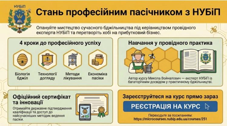 Мрієте про власну справу чи хочете вивести своє бджільництво на новий рівень? Запрошуємо на сертифікований мікрокурс від флагмана аграрної освіти України!