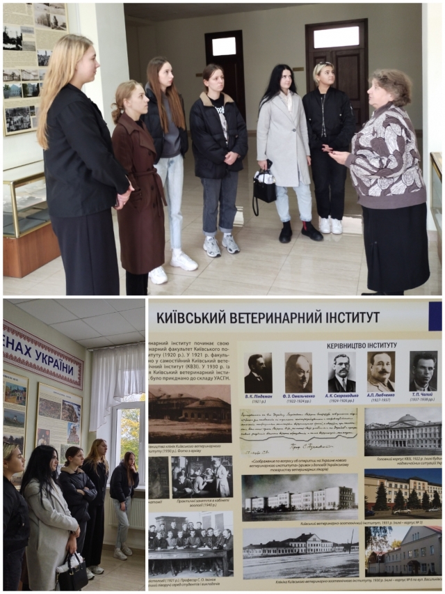 Під час екскурсії студенти ознайомились з історією трипільської культури, розвитком землеробства, звичаями та побутом наших предків, формуванням торгівельних зв’язків, походженням слова «Чумак», дізнались про легенду та перекази походження слова «Голосієво», про історію заснування сільськогосподарського відділення при Київському політехнічному інституті, побачили тогочасні залікові книжки, дипломи та ін. Особливо привабила історія становлення та розвиток нинішнього факультету ветеринарної медицини та розповідь про видатних випускників нашого університету.