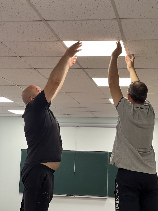27 червня 2022 року силами працівників кафедри технічного сервісу та інженерного менеджменту імені М. П. Момотенка відбулось оновлення на енергозберігаючі системи 12 точок освітлення в лекційній аудиторії №114 навчального корпусу №11.