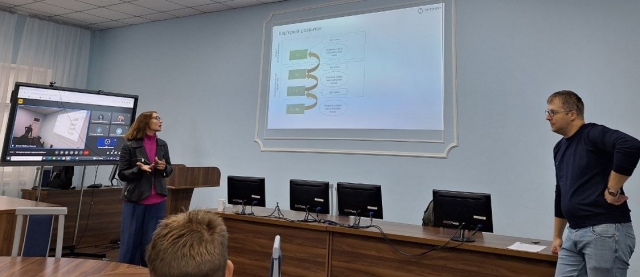 Розпочав зустріч завідувач кафедри комп’ютерних систем, мереж та кібербезпеки Дмитро Касаткін, який представив представників компанії-роботодавця, охарактеризував перспективи співпраці та передав слово Олені Некрасовій. Почала свою зустріч пані Олена з опитування, щодо усвідомленості вибору студентами свого шляху в ІТ галузі та обговорила зі студентами стратегії планування кар’єри, міфи ІТ-ринку, сьогоднішні реалії.