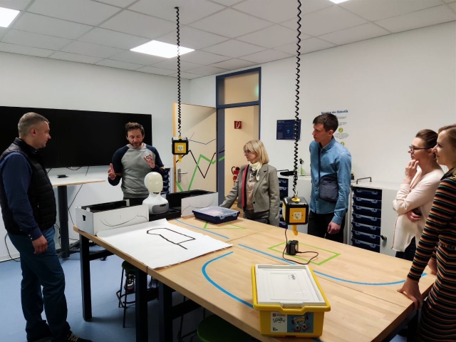В університеті прикладних наук Ансбаху відбувся семінар з діджиталізаціі освітньої діяльності. Шарлота Катцель, керівник центру діджиталізаціі освіти, Йоханес Шоль, керівник лабораторії штучного інтелекту та робототехніки та професор Себастьян Стадлер ділилися своїм досвідом створення освітніх середовищ. Під час екскурсії центром діджиталізаціі освіти учасники семінару обмінялися досвідом використання сучасних інструментів для віртуального навчання, керівник центру продемонструвала технічні можливості аудиторного навчання та матеріальну базу університету для навчання за ІТ спеціальностями. Це лабораторії вбудованих систем, штучного інтелекту, робототехніки, аналізу даних, робочі простори для студентів.
