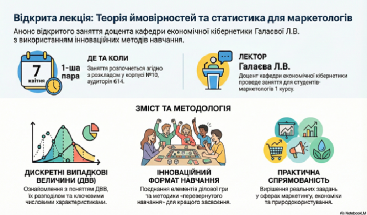 Факультет інформаційних технологій запрошує на відкриту лекцію кафедри економічної кібернетики Приходьте, буде цікаво! 7 квітня 2026 року 08:30 - 09:50 Формат: Очна Місце проведення: корпус 10, аудиторія 614