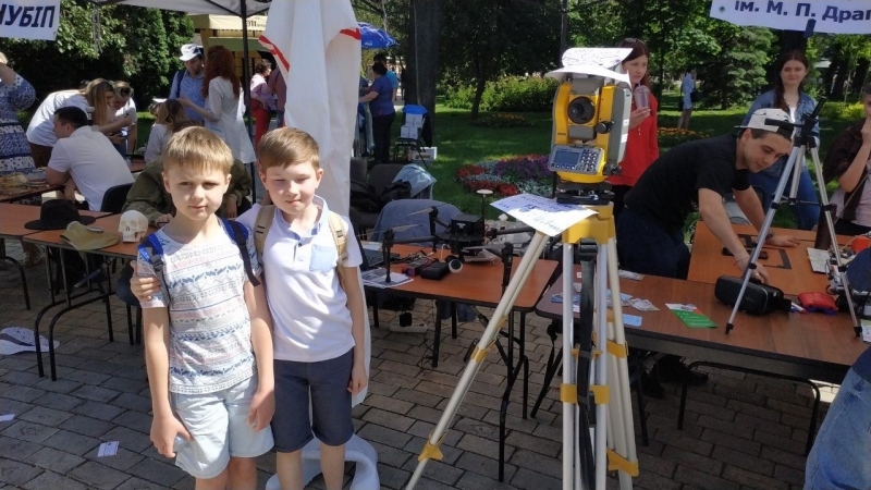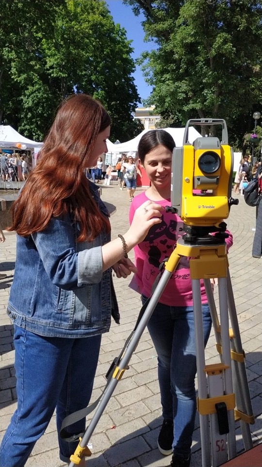 Цього річ факультет землевпорядкування познайомив пересічних киян та гостей міста, які завітали до Парку імені Тараса Шевченка, із можливостями сучасних геодезичних приладів, основами геодезичних вишукувань та вимірювань на місцевості. Доцент кафедри землевпорядного проектування Олександр Чумаченко та лаборант кафедри геодезії та картографії Яніна Степчук захопливо ділилися із усіма бажаючими особливостями землевпорядної та геодезичної науки, а всі хто завітав до них змогли спробувати себе у ролі землеміра, розібратися як працюють геодезичні прилади та як відбувається аерофотозйомка з безпілотних літаючих апаратів.