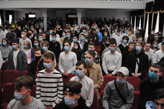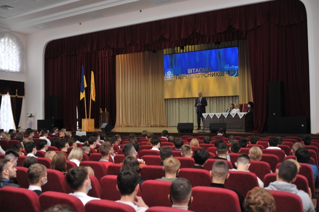 Під час посвяти до першокурсників звернувся з вітальним словом ректор університету Станіслав Миколайович Ніколаєнко, який підкреслив вагомість спеціальностей факультету та внесок, який вони приносять на рівні держави та університету, наголосив про старанність, яка неодмінно має супроводжувати кожного студента під час навчання.