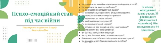 Кирпа Альбіна обрала для себе психоемоційний стан під час війни.