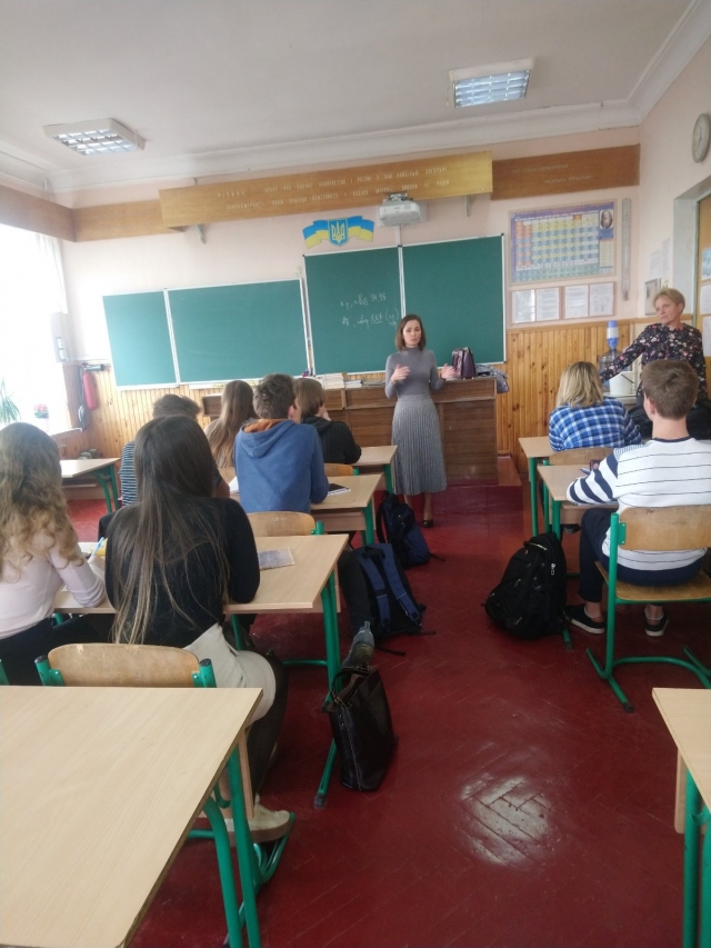Юлія Вікторівна прочитала лекцію на тему «Фінансова грамотність, як основа успішного фінансового майбутнього». На початку лекції вона зазначила, що незалежно від обраної в майбутньому професії, для сучасної людини необхідним є розуміння закономірностей розвитку економіки, здатність орієнтуватися у послугах фінансових посередників та кредитних установ з метою формування оптимальної фінансової поведінки та прийняття зважених і обґрунтованих рішень при розпорядженні особистими фінансами. В процесі спілкування з учнями виникла жвава дискусія щодо висвітлених питань.
