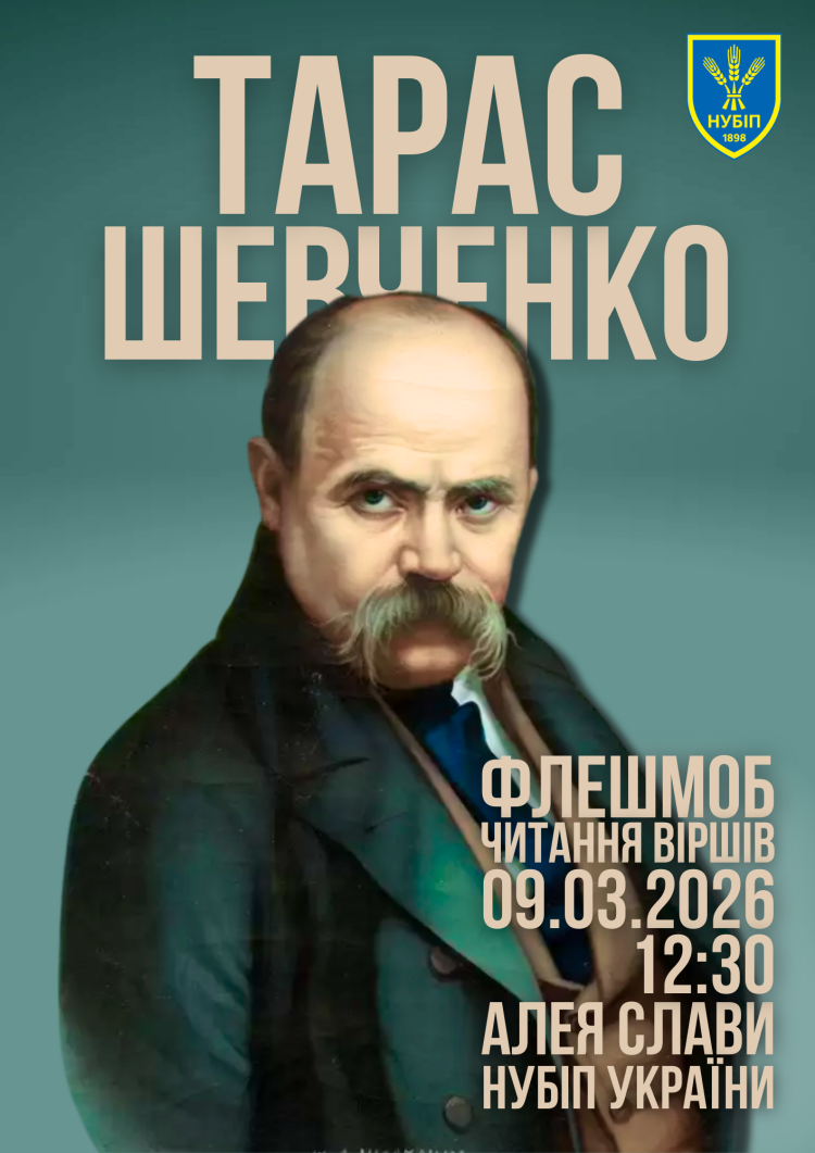 09 березня 2026 року о 12:30 год. на Алеї Слави НУБіП України відбудеться традиційний флешмоб читання віршів та вшанування пам’яті Великого Кобзаря.
