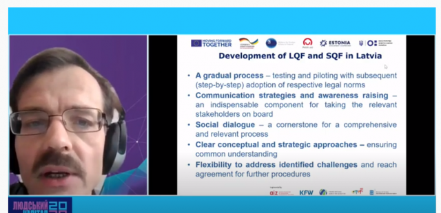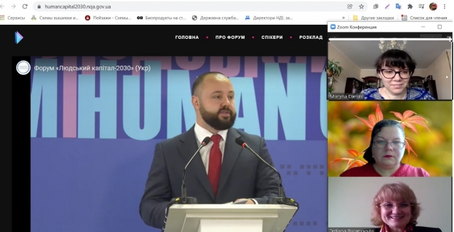 Спікери Валерія Іонан - заступник Міністра цифрової трансформації України з питань європейської інтеграції, Віталій Музиченко - заступник Міністра соціальної політики України, Наталія Алюшина - голова Національного агентства України з питань державної служби, Ольга Коваль - голова підкомітету з питань професійно-технічної та фахової передвищої освіти Комітету Верховної Ради України з питань освіти, науки та інновацій, Олена Колеснікова - голова Галузевої ради Федерації металургів України, Богдан Оверковський - заступник Голови - начальник відділу соціально-економічної роботи Профспілки трудящих металургійної і гірничодобувної промисловості України, Дмитро Карпенко - керівник напряму з професійного навчання «Метінвест Холдинг», Відмантас Тутліс - міжнародний експерт програми EU4Skills обговорили виникнення нових професійних кваліфікацій, трансформацію кваліфікацій під впливом нових технологій та в умовах цифровізації, питання розроблення професійних стандартів: виклики, перспективи та практичні кейси використання. Ці питання дуже тісно пов’язані із аналізом сучасного ринку праці, що є актуальним для розроблення освітньо-наукових програм «Менеджмент» та «Економіка підприємств та галузей національного господарства».