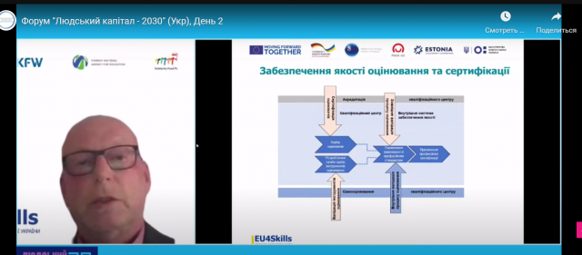 Андрій Вітренко - Перший заступник Міністра освіти і науки України, Геннадій Чижиков - президент Торгово-промислової палати України, Ар’єн Дей - старший фахівець операційного відділу Європейського фонду освіти (ETF), Людмила Василега - директор Департаменту стратегічного розвитку та аналізу ринку праці Державного центру зайнятості, Ольга Чабанюк - заступник голови Профспілки працівників освіти і науки України на громадських засадах, Юлія Гришина - Голова підкомітету з питань вищої освіти Комітету Верховної Ради України з питань освіти, науки та інновацій на панельній дискусії обговорили питання процедури присвоєння або підтвердження професійних кваліфікацій кваліфікаційними центрами, отриманих в результаті неформального та інформального навчання та визнання в Україні професійних кваліфікацій, здобутих в інших країнах.