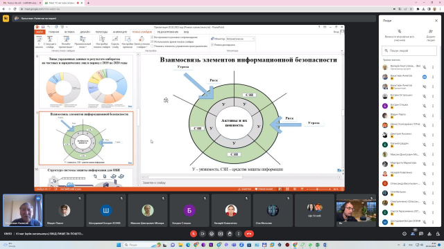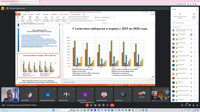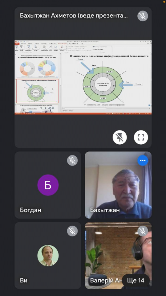 В ході лекції доповідач розповів студентам про пріоритетні напрями досліджень у галузі кібербезпеки та захисту інформації в університетах, які наразі проводяться у Республіці Казахстан, зокрема за участі науковців кафедри комп’ютерних систем мереж та кібербезпеки НУБіП України.