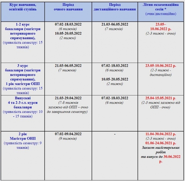 Графік освітнього процесу у НУБіП України на 2-й семестр 2021-2022 н.р. для здобувачів вищої освіти денної форми навчання 18 січня 2022 року 02:00 - 02:00