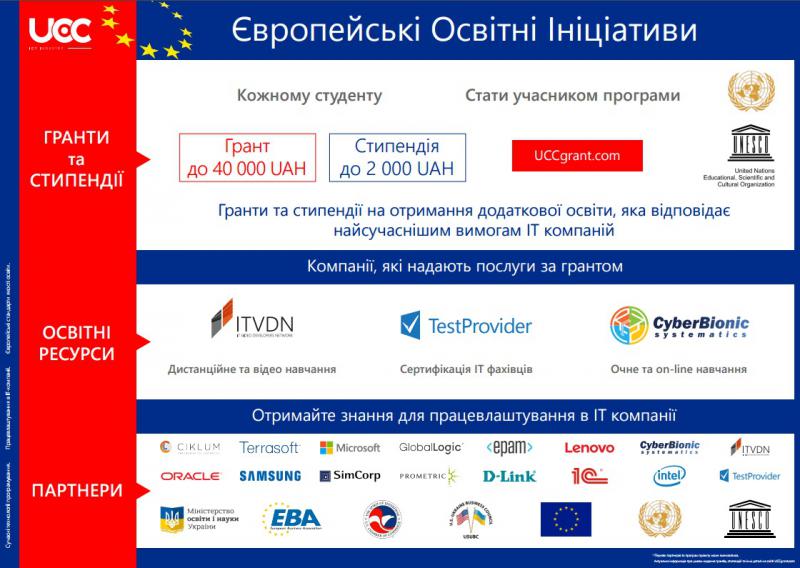 Програма співпраці передбачає надання студентам та абітурієнтам ІТ-спеціальностей грантів на навчання сучасним ІТ-технологіям в комерційних навчальних центрах, а також виплату кращим студентам іменних стипендій.