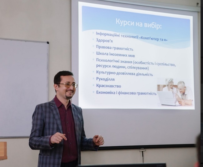 Наш університет не стоїть осторонь таких суспільних явищ. З кожним роком у містах, університетах, соціальними службами, органами державної влади реалізуються освітні й соціальні проекти, спрямовані на забезпечення важливих особистісних потреб наших шановних поважних громадян: це і «Університети третього віку», гуртки та клуби за цікавістю, курси тощо.