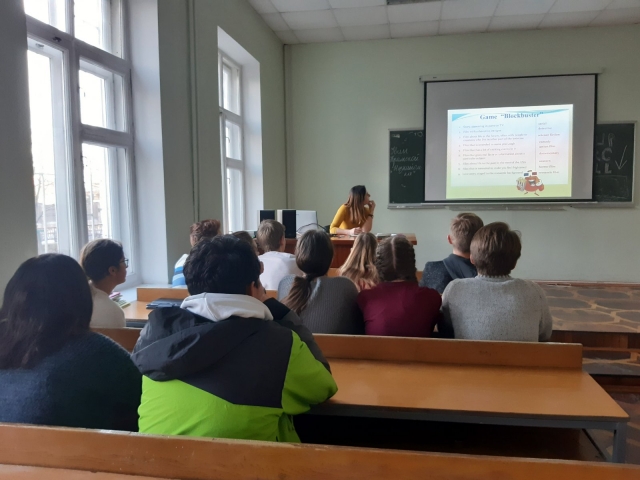 Для проведення заняття було обрано тему, яку учні ліцею попередньо самі запропонували для обговорення, а саме: «Улюблені жанри фільмів». Під час заняття учнів було ознайомлено з різними жанрами кінематографу, професіями людей, які задіяні у процесі створенні фільмів, автоматизовано вживання нових лексичних одиниць у комунікативних ситуаціях. Учні уявили себе кінорежисерами, яких було запрошено до НУБіП України читати лекцію з кінематографу. Учням потрібно було представити студентам Університету переваги та недоліки процесу створення кіно.