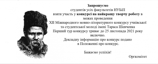 І етап ХІІ Міжнародного мовно-літературного конкурсу учнівської та студентської молоді імені Тараса Шевченка