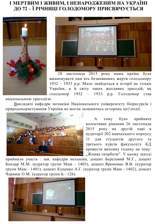 І МЕРТВИМ І ЖИВИМ, І НЕНАРОДЖЕНИМ НА УКРАЇНІ ДО 72 – Ї РІЧНИЦІ ГОЛОДОМОРУ ПРИСВЯЧУЄТЬСЯ 27 листопада 2015 року 18:12 - 18:12