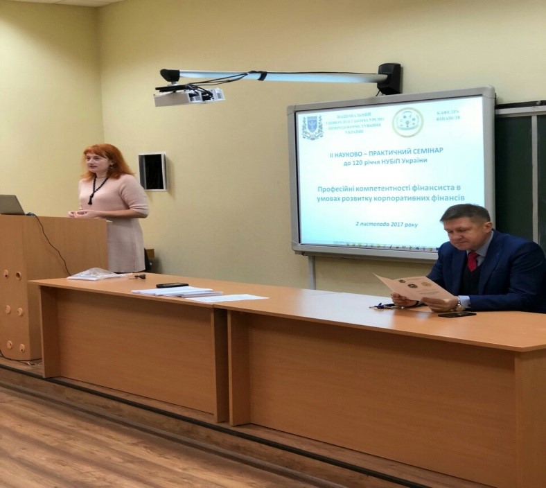 2 листопада 2017 року відбувся ІІ науково-практичний семінар «Професійні компетентності фінансиста в умовах розвитку корпоративних фінансів». На заході були присутні студенти, викладачі та практики. З привітальним словом виступили декан економічного факультету Діброва А.Д. та завідувач кафедри фінансів Давиденко Н.М., яка зазначила, що готуючи сьогоднішнього студента ми повинні готувати конкурентного фахівця, адаптованого до реалій ринку праці. Декан економічного факультету А.Д. Діброва наголосив, що освіті потрібно максимально наблизитися до вимог виробництва та запропонувати роботодавцям кваліфікованого, перспективного працівника.