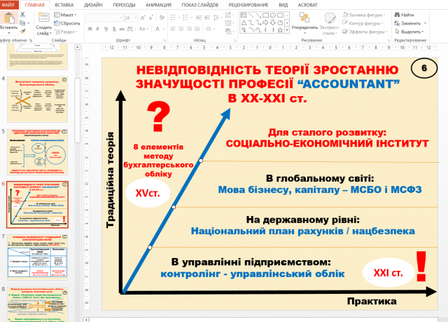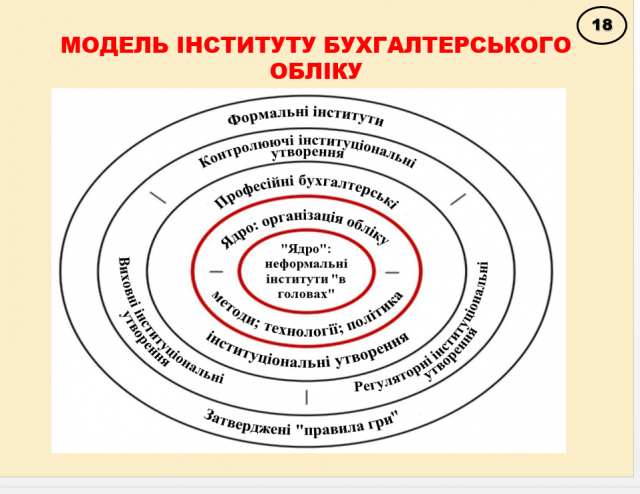 Виокремлено питання невідповідності теорії зростанню значущості професії «ACCOUNTANT» в ХХ-ХХІ ст., проблем обмеженості традиційної бухгалтерської науки, моделі розвитку бухгалтерського обліку західних наукових шкіл, інституціоналізації системи бухгалтерського обліку, інституційному збагаченню предмету бухгалтерського обліку, основним положенням інституціональної парадигми бухгалтерського обліку, моделі інституту бухгалтерського обліку, основ інституціональної теорії обліку: інституціоналізації системи та багато інших цікавих проблем.