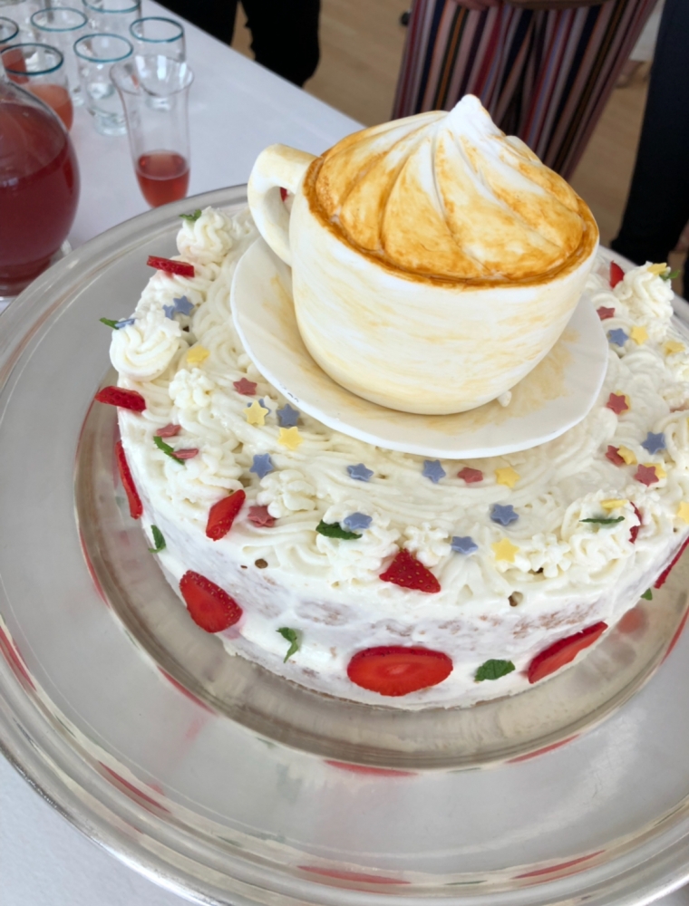 Кульмінація святкової зустрічі частування вишуканим тортом у формі капучіно - улюбленого напою, мабуть, усіх жінок світу. Свято вдалося завдяки майстерності харизматичної художниці, щирості гостей й вишуканому прийому пані Валентини.