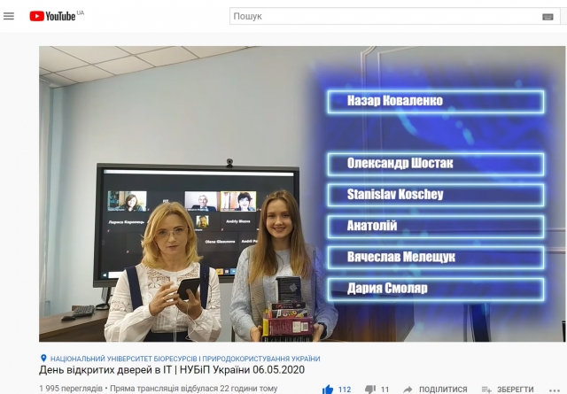 Якщо Ви не змогли відвідати наш віртуальний захід, то долучайтесь до нашого каналу на YouTube ІТ НУБіП (https://www.youtube.com/watch?v=XFN8-aLhacE&t=3556s), де Ви зможете побачити як це було та ближче з нами познайомитись.