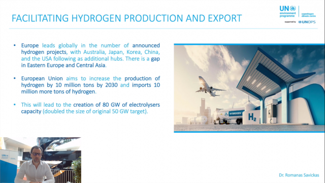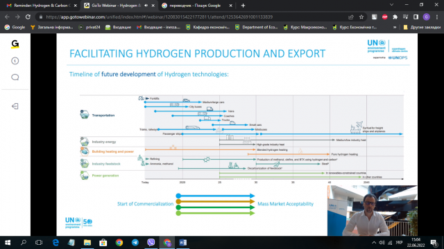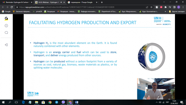 Співробітники кафедри економічної теорії НУБіП України та навчально-наукова лабораторія економічної теорії та біоекономіки НУБіП України долучились до вебінару "Hydrogen & Carbon Capture. Facilitating Green Hydrogen Production and Export", який проводив UNEP Copenhagen Climate Centre 22 червня 2022 року. Модератор вебінару – Арістелдіс Цакіріс, керівник проєкту, UNEP Copenhagen Climate Centre. Доповідач – Д-р. Романас Савіцкас, Старший радник, UNEP Copenhagen Climate Centre.