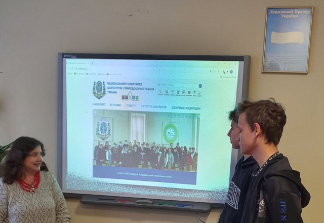 До розмови підключилася учителька біології, вчителька-методистка Наталія Пантеліївна Боганець. Вона розповіла, що її колишні учні, які вступили до НУБІП України, дуже задоволені своїм вибором і рекомендують НУБІП усім, адже отримують ґрунтовну фахову підготовку і мають насичене та різноманітне студентське життя.