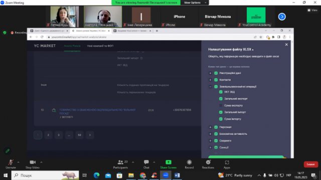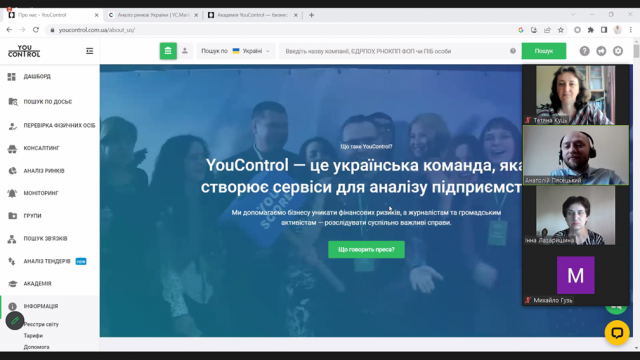 На зустрічі представник фірмиАнатолій Пясецький ознайомив присутніх з ключовою інформацією про ТзОВ «Ю-Контрол», функціонал програми YouControl та засадами роботи з контрагентами. Також детально було розглянуто продукт «Аналіз ринку» та алгоритм збору необхідної інформації для його використання.