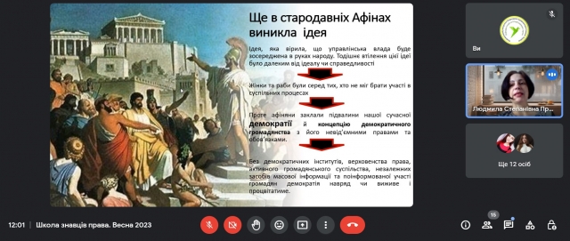 Кафедра ТІДП розпочала весняну сесію онлайн-вебінарів просвітницького проєкту "Школа знавців права" із знайомства з демократією