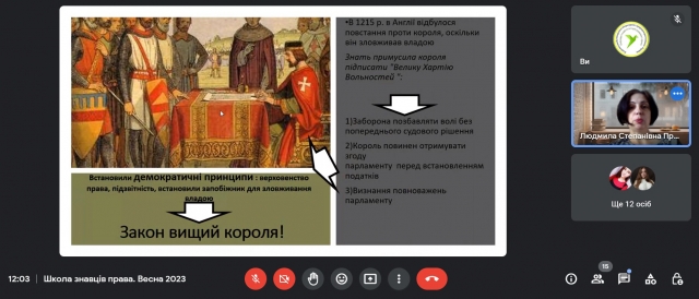 Просвітницький проєкт кафедри теорії та історії держави і права «Школа знавців права», започаткований восени 2021 року після невеликої перерви продовжив свою роботу новою сесією весняних онлайн-вебінарів. Тематика 5 суботніх зустрічей традиційно була складена за побажаннями учасників, які вони висловили через форму зворотного зв’язку.