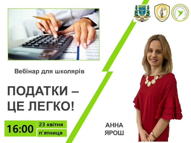 Кафедра ТІДП запрошує на вебінар для школярів "Податки -це легко!"