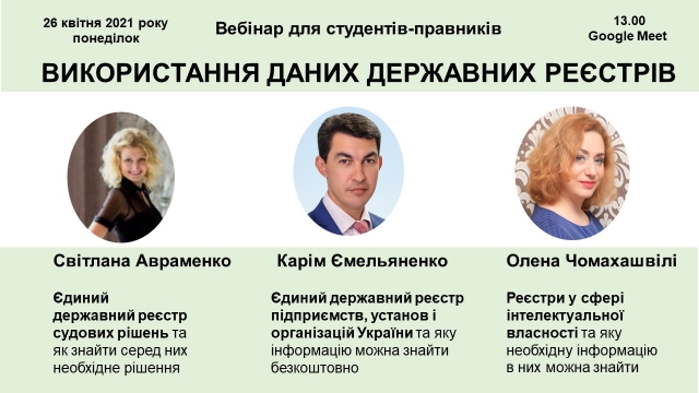 Кафедра ТІДП запрошує на вебінар для студентів-правників «Використання даних державних реєстрів»