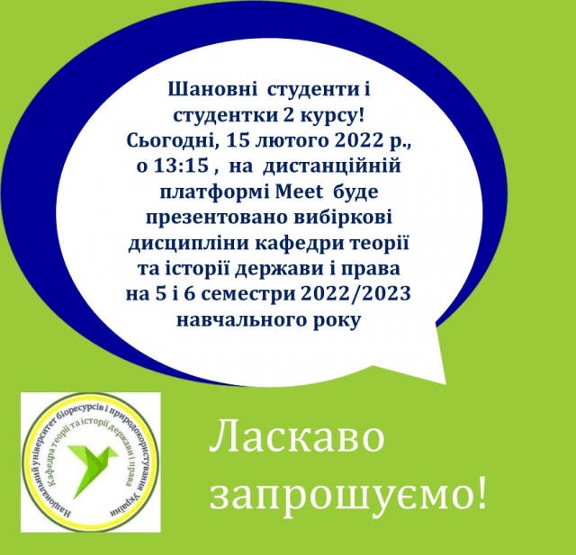 Кафедра запрошує студентів і студенток 2 курсу на презентацію вибіркових компонент на 2022/2023 навчальний рік