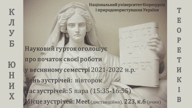 "Клуб юних теоретиків" оголошує про початок своєї роботи у весяному семестрі 11 лютого 2022 року 02:00 - 02:00