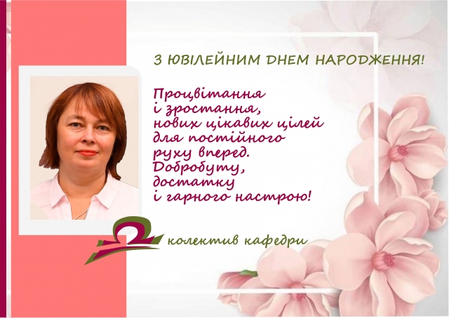 Колектив кафедри вітає Анжелу Андріївну з ювілеєм