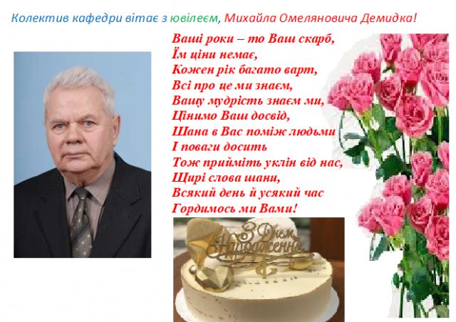 Колектив кафедри вітає з ювілеєм, Михайла Омеляновича Демидка!