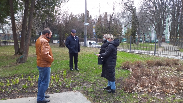 Наразі проектні пропозиції винесено в натуру. Проведено роботи із розбивки території мощеного майданчику у вигляді шестикутника із стороною 4 м. Доріжку, що вестиме до запроектованого майданчику, заплановано розширити до 1,1 м із заміною плиткового покриття на фігурні елементи мощення, які вже є на території.