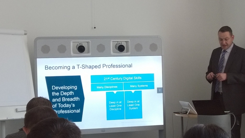 Також до Києва завітав і директор відділу DevNet CISCO USA - Rick Tywoniak, який розказав про концепцію розвитку компанії, її погляди на зміну мережевих технологій та принципів побудови мережі і найголовніше представив інструкторам новий ресурс компанії DevNET. Основне завдання якого, допомогти розробникам softwear у розробці їхнього продукуту, студентам навчитися комунікувати та підвищити свої знання, а інструкторам тримати руку на пульсі та пропонувати власні напрацюванні по роботі із студентами.