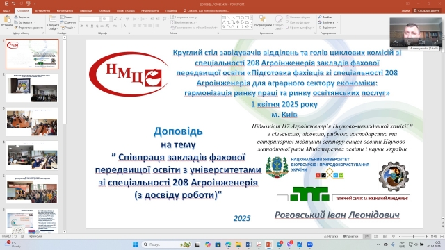 01 квітня 2025 року Науково-методичний центр ВФПОП провів круглий стіл завідувачів відділень та голів циклових комісій зі спеціальності 208 Агроінженерія закладів фахової передвищої освіти «Підготовка фахівців зі спеціальності 208 Агроінженерія для аграрного сектору економіки: гармонізація ринку праці та ринку освітянських послуг».