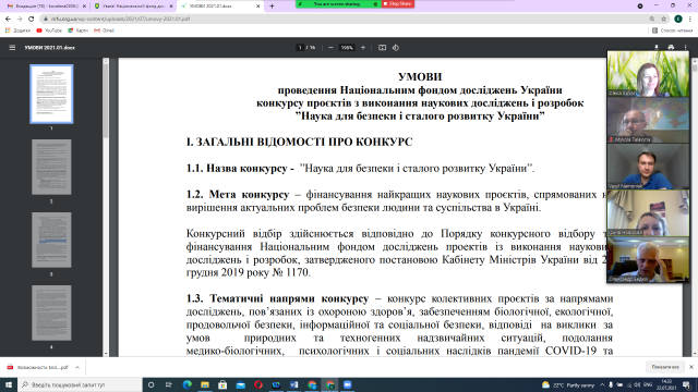 Національним фондом досліджень України оголошено конкурс проєктів з виконання наукових досліджень і розробок «Наука для безпеки і сталого розвитку України». Мета конкурсу − фінансування найкращих наукових проєктів, спрямованих на вирішення актуальних проблем безпеки людини та суспільства в Україні. Тематичні напрями конкурсу – конкурс колективних проєктів за напрямами досліджень, пов’язаних з охороною здоров’я, забезпеченням біологічної, екологічної, продовольчої безпеки, інформаційної та соціальної безпеки, відповіді на виклики за умов природних та техногенних надзвичайних ситуацій, подолання медико-біологічних, психологічних і соціальних наслідків пандемії COVID-19 та вирішення пов’язаних з цим юридичних питань. Детальніше: https://nrfu.org.ua/