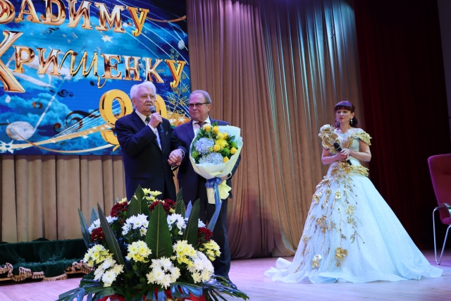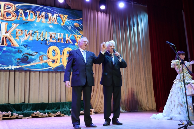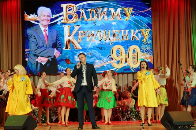 Про щире українське слово написала пісню на вірші ювіляра народна артистка України Наталія Шелепницька, яка тепло відгукнулася про улюбленого поета, та й про університет, у якому пропрацювала 22 роки. Один з перших учнів Наталії Михайлівни, випускник університету Дмитро Андрієць, сьогодні вже заслужений артист України, тож зала почула ще «Дві зорі» у виконанні дуету, який неодноразово звучав на цій сцені. А Дмитро схвилював залу « Хай береже всіх нас Господня сила!» ( Вадим Крищенко зумів 10 заповідей Божих покласти на вірші).