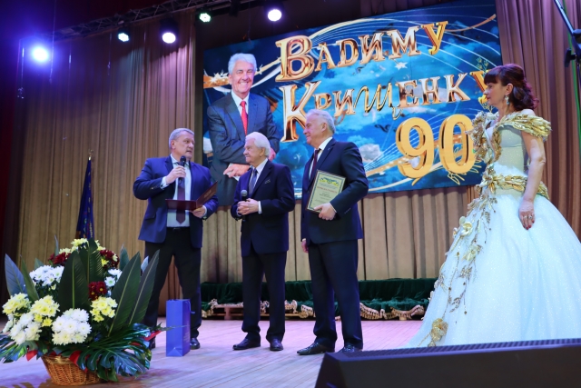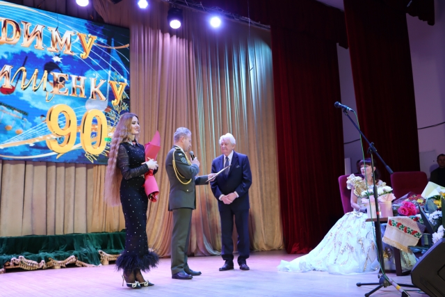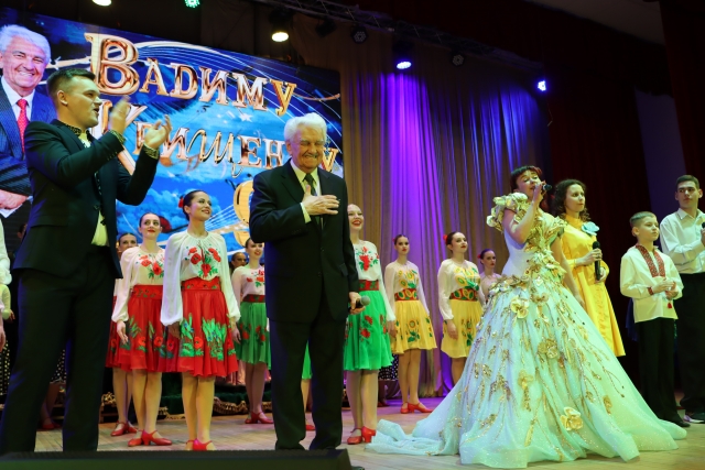 Так, ювілярові багато років, та є у нього рядки : «Людина, котра пише вірші, не може зватися «стара» ! Тож « Запитаю в осені, запитаю в літа, чом так швидко цокають днів моїх копита» від Олександра Ткаченка навіяла не сум, а теплі спогади про Анатолія Авдієвського, Дмитра Гнатюка, Бориса Олійника, Андрія Малишка, Віктора Шпортька, Ніну Матвієнко, Віталія Білоножка, Раїсу Кириченко, з якими співпрацював ювіляр… Саме Раїса Опанасівна колись виконувала «смачну» пісню на слова Вадима Дмитровича «Варенички». Цю пісню ми почули на святі у виконанні народної артистки України Ярослави Руденко - володарки прекрасного першого альту, солістки Національної філармонії України і Заслуженого академічного ансамблю пісні і танцю ЗСУ, яка є кандидаткою мистецтвознавства завдяки захисту дисертаційної роботи про творчість Раїси Кириченко. Ярослава прийшла із сюрпризом – нагородою від військово-музичного управління, яку вручив Вадимові Дмитровичу начальник управління Ігор Кішман.