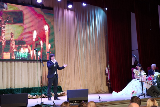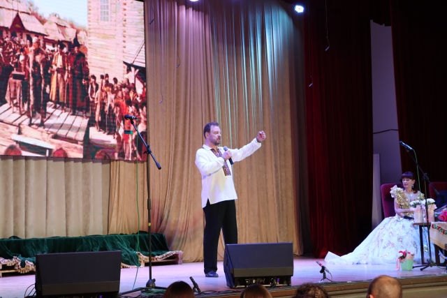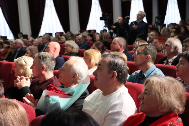 Так пише Вадим Крищенко про кохану жінку. Проникливо… І не менш проникливим було виконання народним артистом України Олександром Василенком романсу «Сьогодні свято в нас». Олександр Миколайович не вперше на нашій сцені, тож під фінал концертної програми виконав і життєстверджуючу « Гей ви, козаченьки…»