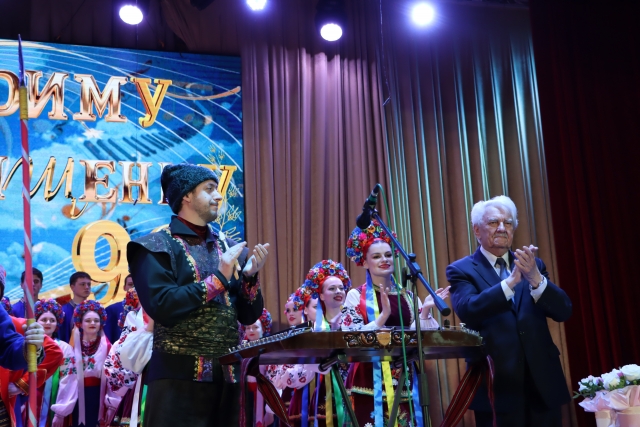 Вітали ювіляра і колеги-кафедрали: народний артист України професор кафедри Роман Рудий – «Котиками вербовими», заслужений артист України доцент Віктор Кавун та старший викладач Владислава Чайка - «Батько і мати, два сонця гарячих», старший викладач Тарас Кушнір – «Хай щастить вам, люди добрі», хореографічний ансамбль «Сузір'я ритмів» під керівництвом Вячеслава Борзенкова - постановкою на «Вишеньку-черешеньку», ансамбль бального танцю "Чарівність" під керівництвом Світлани Макоди - "Київським вальсом", "тріо «Тоніка» - «Полісяночкою» ( та так, що Вадим Дмитрович, здавалося, зараз до танцю піде!»).