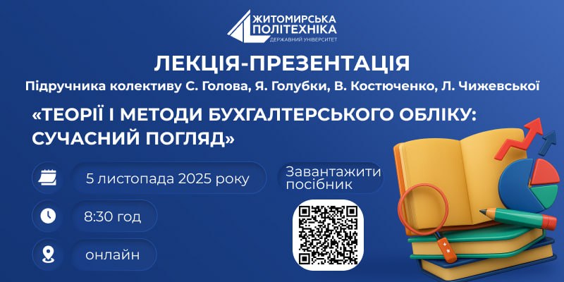 Лекція-презентація підручника колективу С. Голова "Теорії і методи бухгалтерського обліку: сучасний погляд" 5 листопада 2025 року 08:30 - 12:00