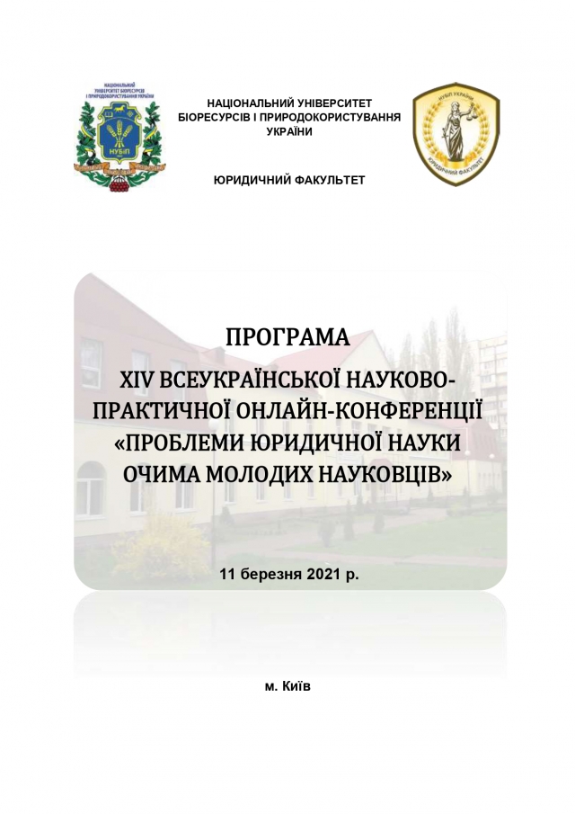 Матеріали роботи ХІV Всеукраїнської науково-практичної онлайн-конференції "Проблеми юридичної науки очима молодих науковців", 11 березня 2021 року Завантажити збірник наукових праць Завантажити програму конференції 15 березня 2021 року 02:00 - 02:00