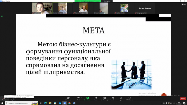 В п’ятницю 17.06.22р. , студентом групи ПО-21002бск Богданом Дишлюком було проведено заняття на тему «Культура бізнесу», де було чудово розкрито тему, досягнуто мету.