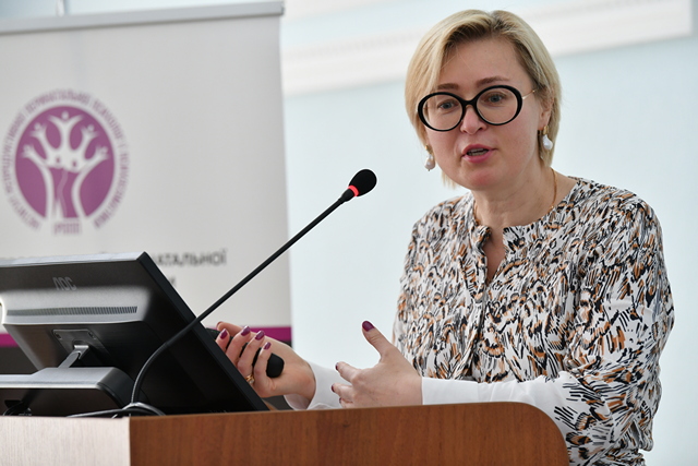 Психолог, психотерапевт за напрямком психодрама, інструктор по підготовці до пологів Ірина Тулей продемонструвала учасникам конференції психологічні методи роботи та супроводу сімейних пар з порушенням репродуктивного здоров’я та розповіла про їхню результативність.