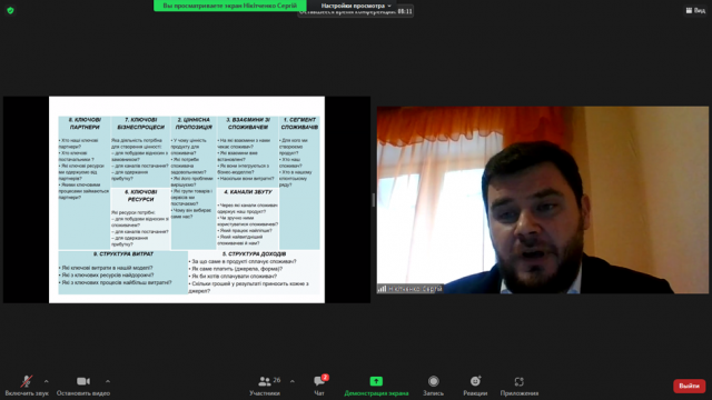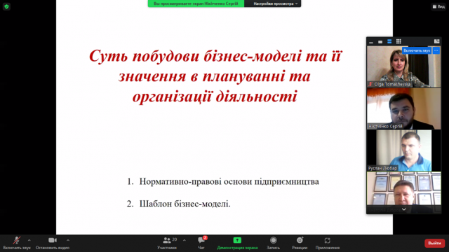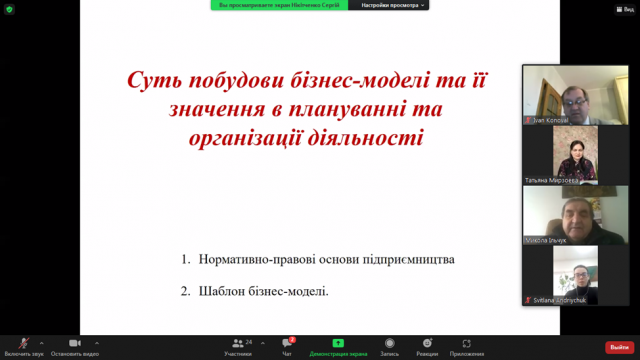21 лютого 2022 р. у рамках міжкафедральної співпраці д.е.н., доцент кафедри економіки Мірзоєва Т.В. відвідала відкриту лекцію к.е.н., доцента кафедри підприємницької діяльності та біржової торгівлі Нікітченка С.О. Лекція на тему «Суть побудови бізнес-моделі та її значення в плануванні та організації діяльності» була представлена студентам магістрів НУБіП України у дистанційному форматі на платформі Zoom. Проводилося лекційне заняття згідно плану-графіка проведення відкритих лекцій викладачами економічного факультету. На занятті були присутні представники професорсько-викладацького складу економічного факультету.