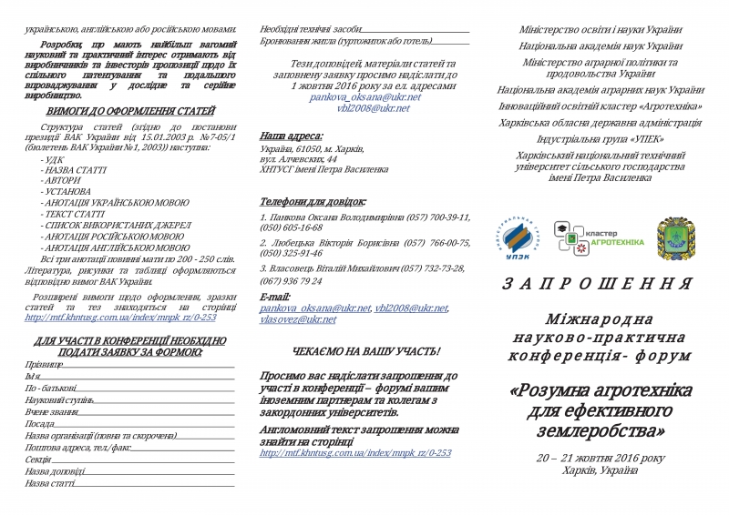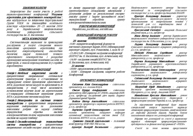 Міжнародна науково-практична конференція "Розумна агротехніка для ефективного землеробства"